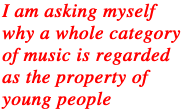 JL: I am asking myself why a whole category of music is regarded as property of youth. It is no problem for classical musicians to become older, and blues musicians are born old.