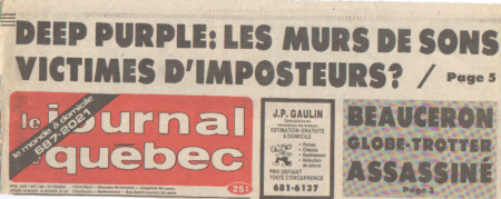 Rod Evans bogus Deep Purple reunion - Canadian press clippings