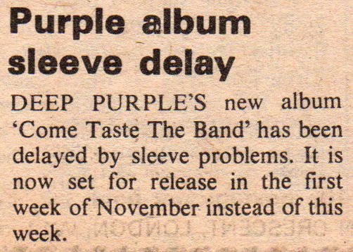 Come Taste The Band’s UK release was originally scheduled for Friday, 10 October 1975, but was delayed by 4 weeks to Friday, 7 November 1975, which was attributed to issues with the sleeve — see two contemporary cuttings.