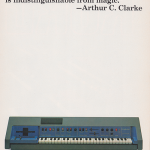 ”Across 1976 and into the early-1980s, the Hohner Clavinet D6 sat above the Hammond, with the ARP String Ensemble positioned above it, creating a somewhat towering four-tiered keyboard stack that one cannot miss in music videos and concert footage of the period.”